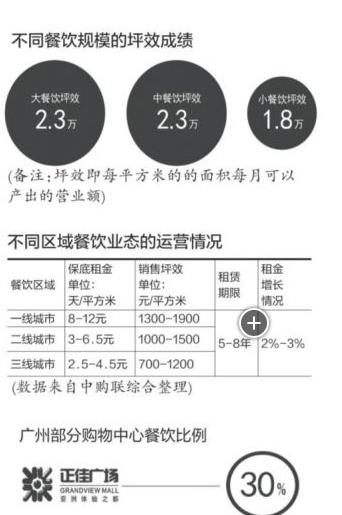 按照徐麗的說法,現(xiàn)在購物中心的餐飲商家只有25%在盈利,另外50%的商家則面臨生存壓力,余下25%則可能有所虧損!皳(jù)我所知,有的餐飲品牌在廣州最旺的購物中心,月營業(yè)額即便做到200多萬,也沒賺到多少錢!