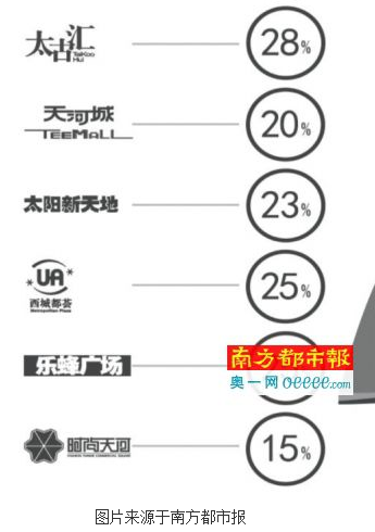 記者粗略統(tǒng)計(jì)了一下,按面積規(guī)模統(tǒng)計(jì),正佳廣場的餐飲規(guī)模占比高達(dá)30%,太古匯、西城都薈、樂峰廣場的占比則超過25%;另外天河城、太陽新天地的占比超過20%。