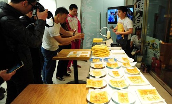 2016年4月19日,在黃太吉外賣平臺與眾多知名餐飲公司入駐簽約儀式中,由清華學霸創(chuàng)業(yè)的三弟畫餅團隊,用他們研發(fā)的3D煎餅打印機,為現(xiàn)場知名餐飲企業(yè)打印了帶有LOGO的個性化煎餅,引發(fā)眾人圍觀。